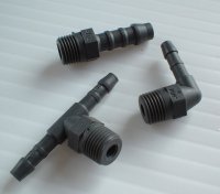 Avaialable in streight, elbow and tee. std 1/8"npt thread. suitable for above pipe. Made from thermo plastic